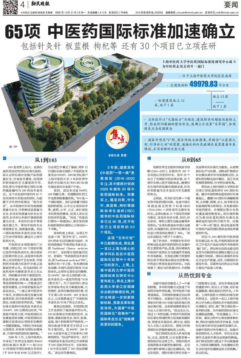 新民晚报:65项 中医药国际标准加速确立 包括针灸针 板蓝根 枸杞等 还有30个项目已立项在研