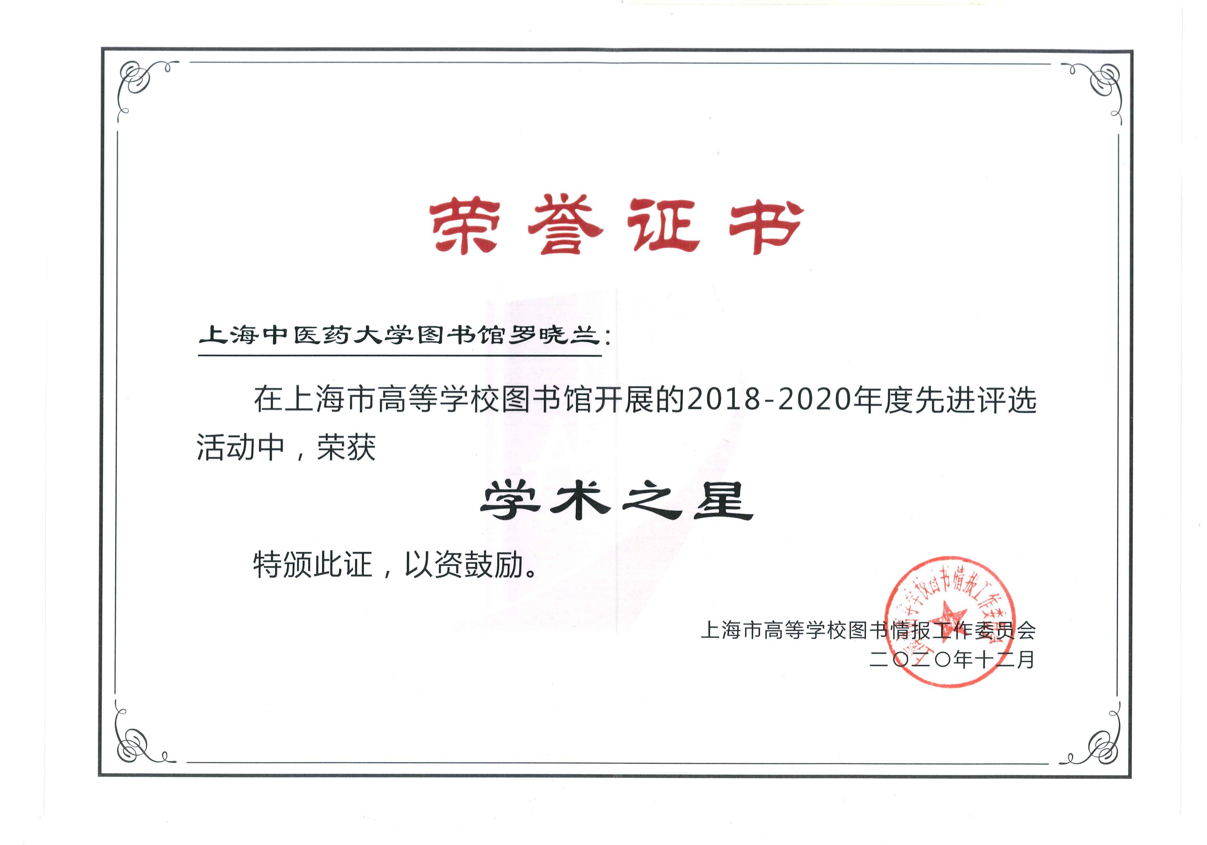 上海市高等学校图书情报工作委员会每两年组织一次评选活动,对在各自岗位上辛勤耕耘、取得良好成绩的集体和个人进行表彰。伟德图书馆推荐的先进个人、文献信息教研室的罗晓兰获得“学术之星”称号,这也是她连续第二次获得该项荣誉。