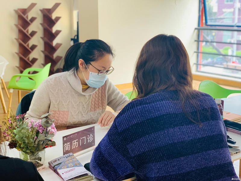 招聘会上,为帮助毕业生提升技能、获得岗位,浦东新区就业促进中心设立政策咨询台,安排指导专家及相关工作人员提供“职业指导”“创业指导”“培训服务”“政策咨询”等服务项目,还打造了“E立方”职业指导品牌,把政策、岗位、培训等资源送到学生身边。