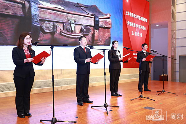 快板书《赤胆忠心》和评弹《云老三唱》用曲艺表演的形式诠释了陈云同志对祖国和人民的赤胆忠心、英勇无畏的革命精神。学校终身教授方肇勤带领基础医学院中青年党员教师朗诵《这是真的吗?》,生动讲述沉淀在革命文物上的 “红色记忆”。