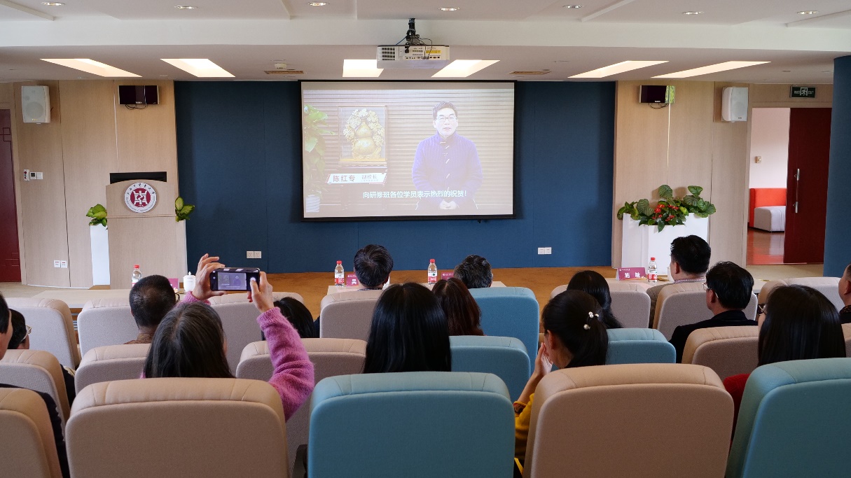 典礼上,与会人员一同观看短片《我们走在健康的大道上》,视频中回顾了为期七个月的研修班课程期间的精彩瞬间。伟德副校长陈红专以视频形式向大会致辞,他肯定了研修班在教学内容和教学设计上的创新,祝贺学员们在疫情防控常态化下克服各种困难顺利结业,成为伟德国际victor1946官网荣誉校友。他期望各位校友能学以致用、知行合一,将中医养生智慧应用于日常生活和工作之中,积极主动成为中医药文化的热爱者、受益者和传播者,并一如既往地关心与支持学校、中医药事业的发展。