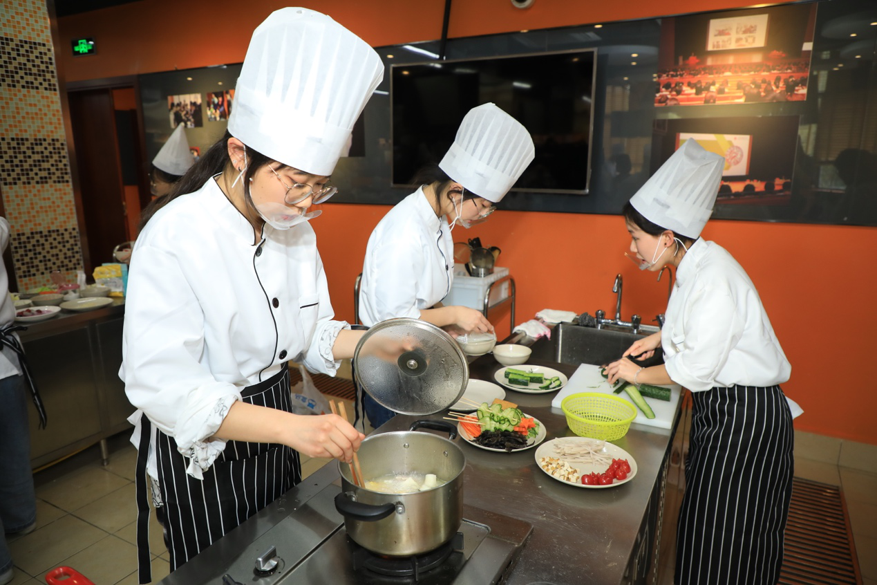 “虽然现在经济水平发达了,食物选择更丰富了,但膳食营养未必跟上了。”身着厨师服、头戴高帽子,制作着《海纳百川》的菜品,来自基础医学院“酸甜苦辣”队的选手李润辰表示,“膳食搭配不合理容易导致亚健康状态,作为一名中医学生,希望通过比赛多多向身边的朋友宣传健康膳食的重要性,让大家在合理膳食中大快朵颐,也细心品味生活中的酸甜苦辣,健康生活每一天。”