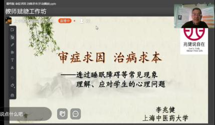 教师心理赋能工作坊共五讲,邀请了伟德中医心理专家李兆健教授,上海市精神卫生中心主任医师何燕玲,上海市精神卫生中心临床心理科主任、心身医学特色学科负责人陈珏,上海市精神卫生中心医务部主任、主任医师姚培芬,复旦大学社会发展与公共政策学院党委副书记、副教授刘明波,分别就“身心关系”“疾病识别”“危机发现”“转介流程”“关系建立”五大主题开展培训。