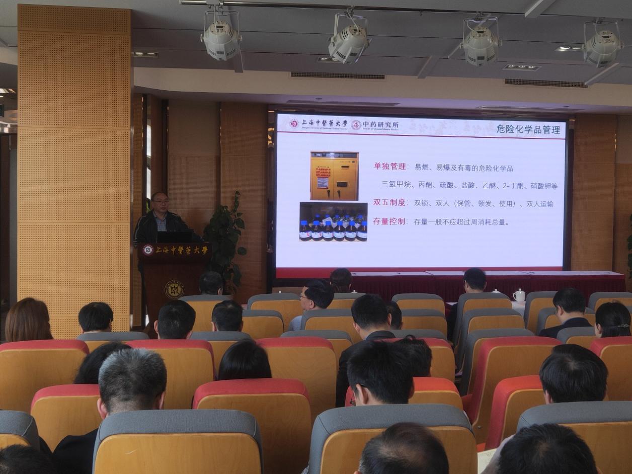 中药研究所副所长王长虹作“中药研究所实验室安全管理情况汇报”主题报告,介绍了中药研究所实验室管理组织构架、安全管理制度、安全管理文化建设及实验室存在的问题等事项。