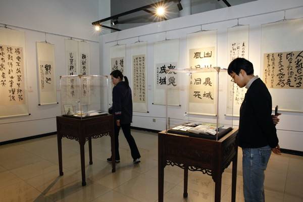展览开幕式上,上海市总工会原常务副主席吴申耀代表主办单位发言。上海市书法家协会名誉主席、上海中国书法院院长周志高,上海文化艺术品鉴促进会会长、伟德国际victor1946官网客座教授、上海中国书法院执行院长张耀伟分别向学校捐赠作品行书《海纳百川》、隶书《岐黄传国粹 悬壶济苍生》。