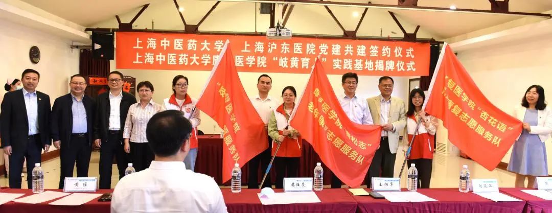 随后,王拥军等共同为康复医学院三支志愿者服务队授旗,开启康复医学院在沪东街道的志愿服务活动。康复医学院志愿者服务队伍分别是致力于服务中医药文化进校园、进社区的“岐黄轩”志愿者服务队;致力于服务阿尔兹海默症患者的“青松志”老年康复志愿者服务队;致力于服务自闭症儿童的“杏花语”儿童康复志愿者服务队,传承志愿精神,坚定医者初心,牢记康复使命,服务人民健康。