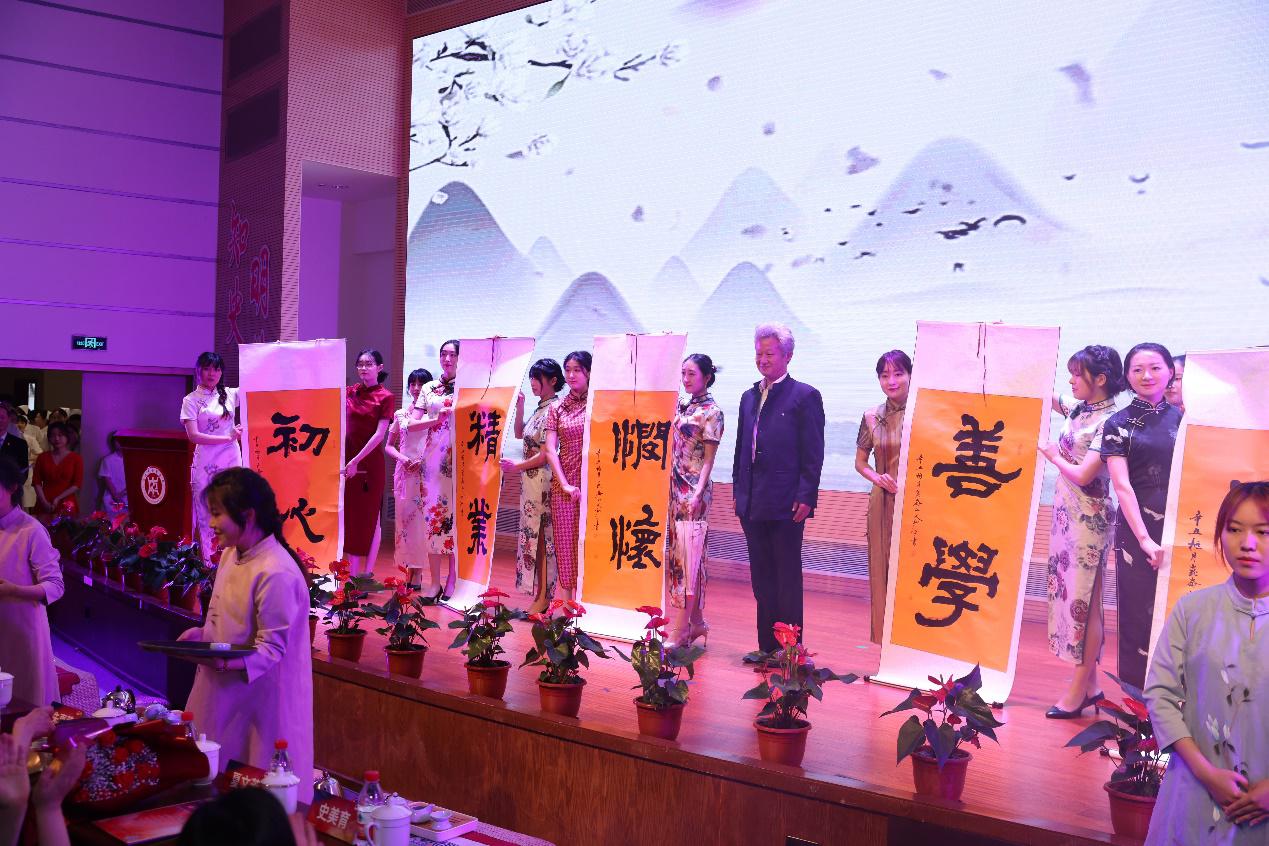 在“大美护理”美育展示环节,护理师生“秀”出了海派旗袍、茶艺、书法等中华优秀传统文化的育人成果。上海市医务工会书画协会会长张翔宇挥墨书写了“初心·使命”,护理学院院训“明德、善学、悯怀、精业”等作品,将真诚的祝福和希冀送给所有护理人。