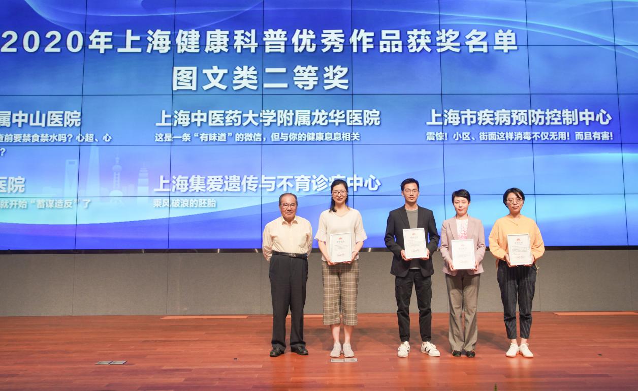 5月11日,由上海市卫生健康委、市健康促进委员会办公室主办,市健康促进中心承办的“2020年上海市健康科普优秀作品征集推选活动颁奖交流会”,以一场别开生面的“健康科普作品秀”,积极推进健康知识普及行动。附属龙华医院肛肠科主任医师王琛创作的《这是一条“有味道”的微信,但与你的健康息息相关》荣获图文类作品二等奖,市中医医院肿瘤五科主任医师朱为康、治未病科副主任医师张毅、脑病科副主任医师黄宁静、药学部副主任药师朱海青、宣传处罗云、张钦集体创作的《中医药小百科系列视频》荣获音视频类作品三等奖,曙光医院党委副书记姚政负责的《冬养正气有“膏”招》荣获音视频类作品优秀奖,龙华医院浦东分院传统治疗部主任医师赵海音和医师薛世勇创作的《哪些人不能使用艾灸?你想要的艾灸知识在这里》荣获图文类作品优秀奖。