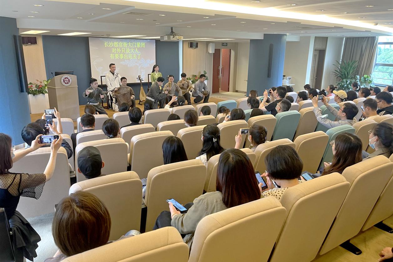 5月20日,评弹剧《医圣》交流展演活动在伟德国际教育学院三楼会议室举行。为深入学习贯彻习近平总书记在河南南阳考察时进一步发展中医药的指示精神,深入推进《上海中医药条例》宣传贯彻要求,上海市中医药管理局和伟德邀请上海评弹团《医圣》评弹剧创作和演出人员举行专题交流展演活动。上海市中医药管理局一级调研员姚玮莉、伟德师生代表、附属医院规培生代表、中医医联体牵头单位相关负责人等近百人参加。