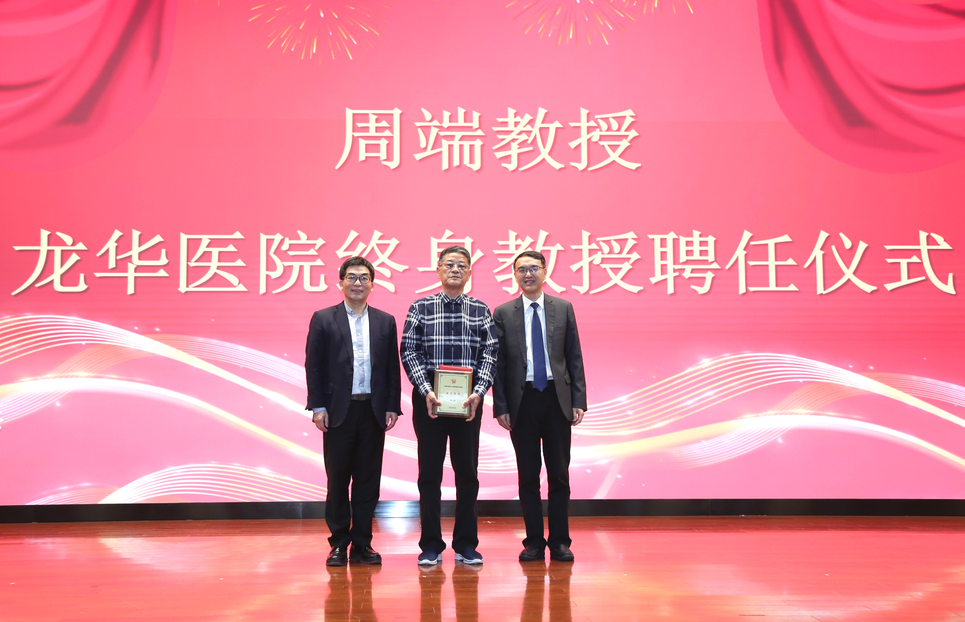 为褒奖在医院发展和学科建设中贡献卓著且造诣精深的专家,充分肯定专家的学术地位, 充分发挥专家进一步促进学科发展和人才培养作用,自2004年起医院开展龙华医院终身教授聘任工作,已有12名专家获聘龙华医院终身教授。此次,周端教授获聘龙华医院终身教授,会上举行了龙华医院终身教授聘任仪式。