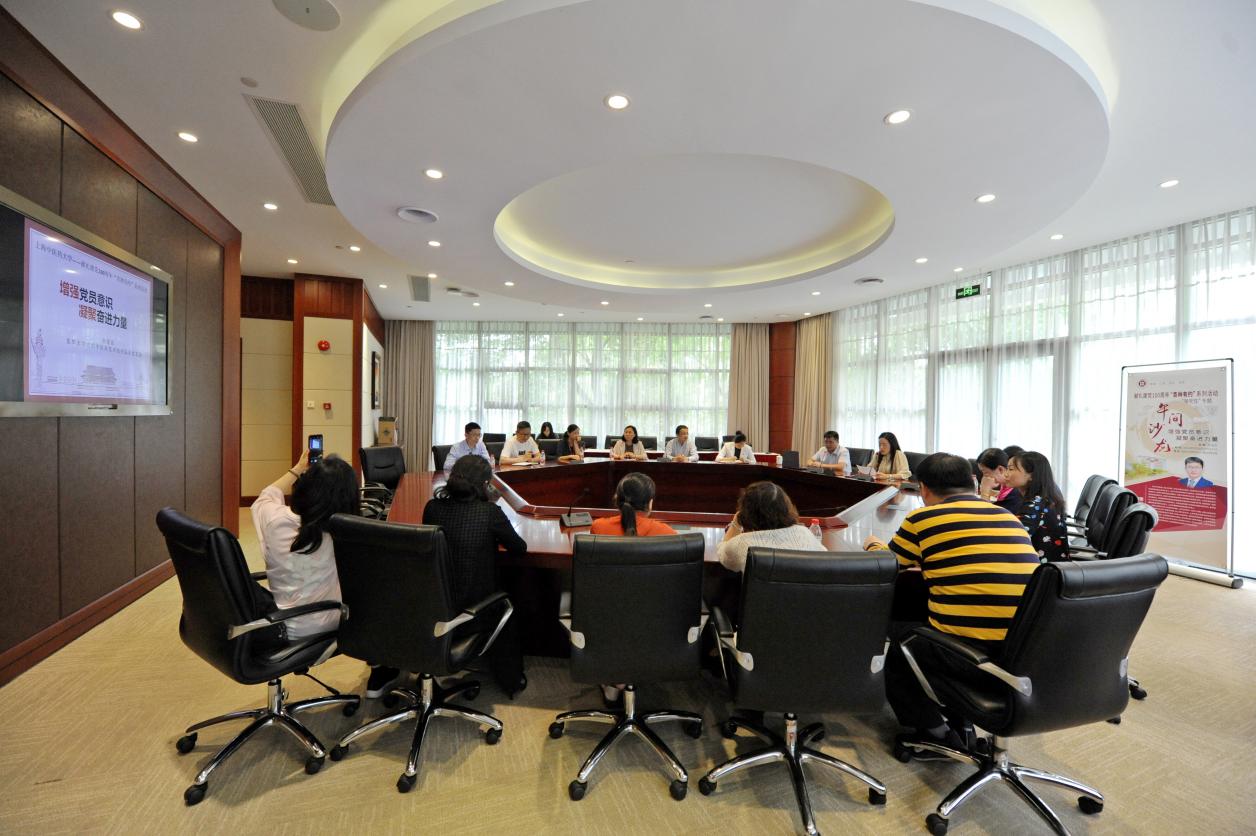 5月28日中午,伟德献礼建党100周年“杏林有约”系列活动之午间沙龙“强党性”专题沙龙在国际教育学院104会议室举行。东华大学纺织学院高技术纺织品系党支部书记孙宝忠教授受邀作交流分享,学校部分教师党支部书记及委员参加。校党委教师工作部副部长刘虹主持本次活动,并向孙宝忠颁发“阳光导师”荣誉证书。