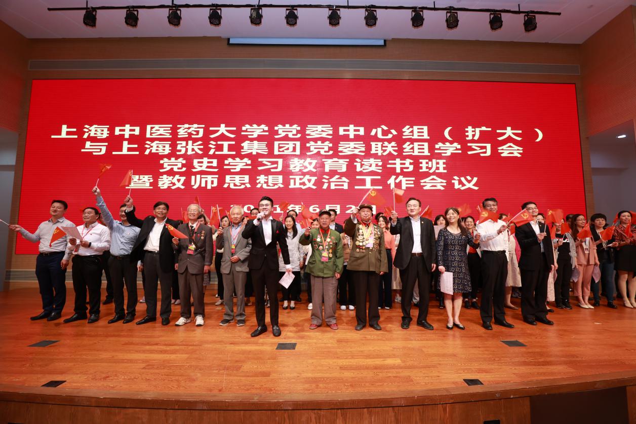6月2日下午,校党委中心组(扩大)与上海张江集团党委联组学习会、党史学习教育读书班暨教师思想政治工作会议在图书馆裙楼四楼报告厅举行。中国人民解放军国际关系学院原副院长、少将、教授、博士生导师宋渭澄,八路军老战士、参加过抗日战争、解放战争、抗美援朝战争并曾创造三项世界纪录的空军老英雄孙佑民,抗美援朝老战士、上海市干部教育先进工作者华金才,抗美援朝老战士、在朝鲜战场上获得三等功的老英雄吴永麟,上海张江集团和上海华源传统文化研究院领导,以及校党委中心组成员,教师思想政治工作指导委员会、师德师风建设委员会全体委员,党外代表人士,校本部党支部书记,马克思主义学院全体教师,青年教师班主任、组织员、辅导员,海归教师代表和师生代表约400人参加会议。校党委副书记季光主持会议。