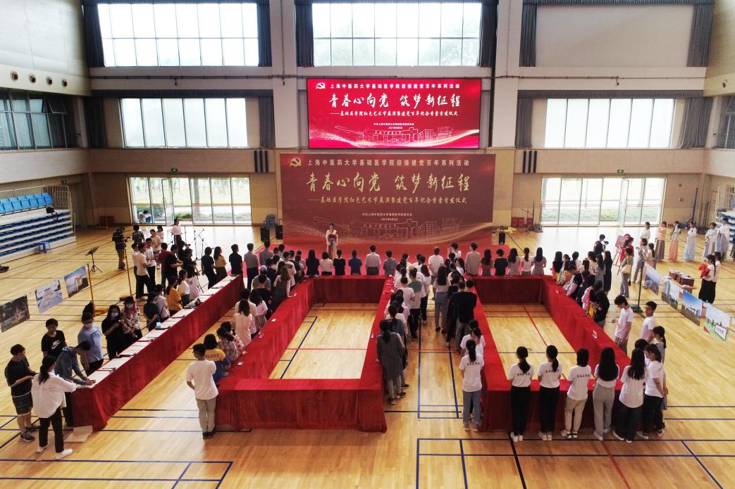 仲夏时节,绿树浓荫,草木深长。6月9日,“青春心向党 筑梦新征程”基础医学院红色艺术节展演暨建党百年纪念香囊首发仪式在伟德体育馆举行。基础医学院全体毕业生党员、少数民族学生、港澳台学生和部分师生代表,共百余人参加。基础医学院学生艾力亚尔·吐尔逊和陆昕月主持。