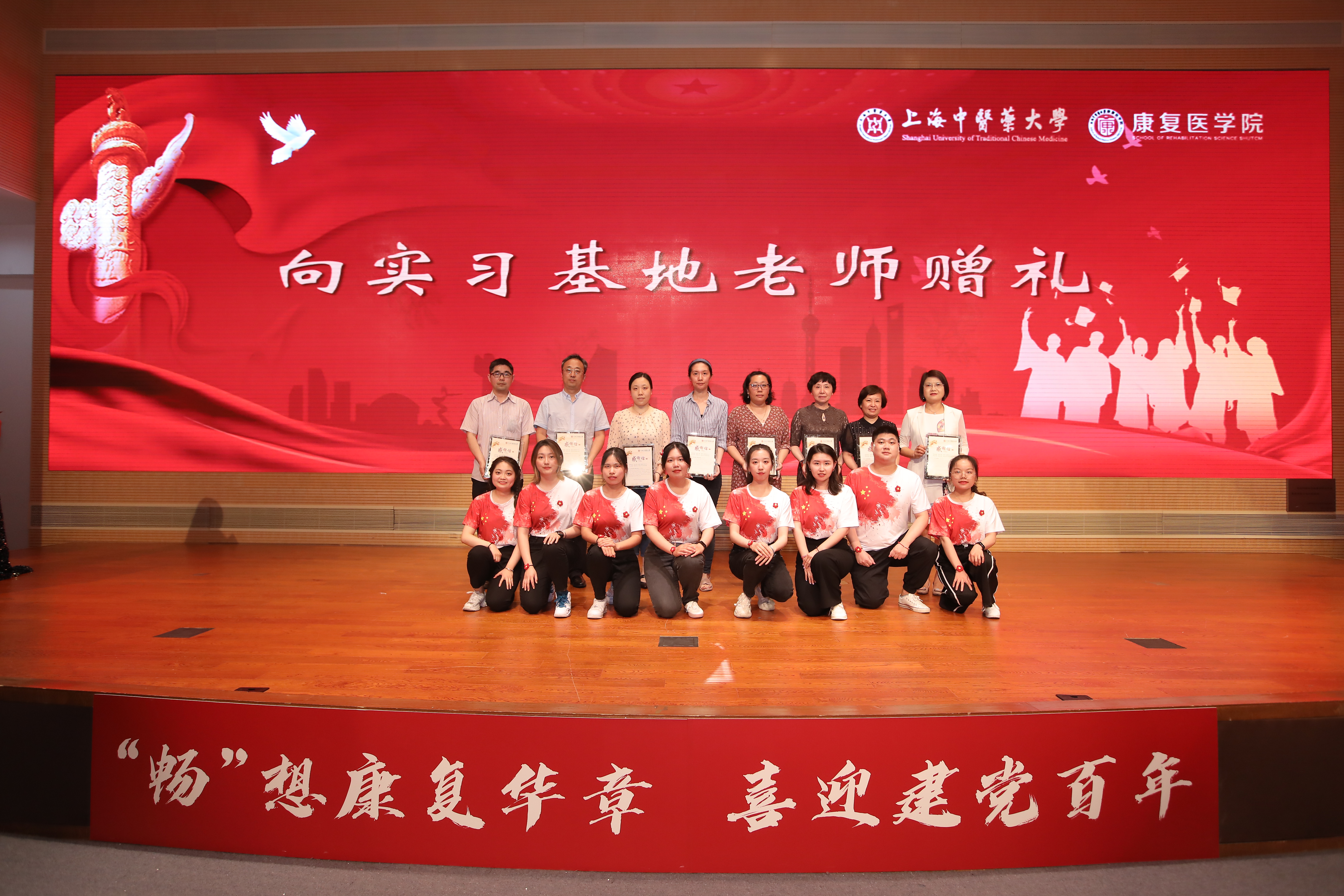 6月10日晚,康复医学院创新党史学习教育形式,“喜迎建党百年 ‘畅’想康复华章”浸润式师生互动党课暨2021届毕业歌会在图书馆四楼报告厅举行。伟德副校长杨永清,上海市康复医学会常务副会长郑洁皎,校终身教授、康复医学院名誉院长严隽陶出席。党校办、宣传部、纪委、教务处、学工部、团委等职能部门和兄弟学院领导热情参与,康复医学院将讲、演、唱、跳等方式结合,既注重形式载体创新,又挖掘一系列红色歌曲内涵,以重新演绎经典的方式呈现党的百年历史,生动立体、全面深刻地描绘一幅幅波澜壮阔的历史画卷,将党史学习教育与大学毕业季主题教育紧密结合。