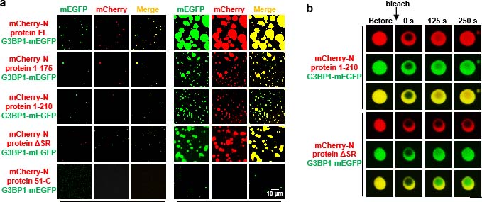 宿主细胞对抗病毒感染的机制之一是通过液-液相分离形成应激颗粒(stress granule)以抑制病毒复制。新型冠状病毒SARS-CoV-2具有逃避宿主细胞的防御反应的能力,因此具有超强的传染性。可是,新冠病毒是如何逃避宿主细胞的防御反应并不清楚。该研究发现,新冠病毒的核衣壳蛋白(N 蛋白)能够与宿主细胞Ras-GTP 酶激活蛋白结合蛋白(G3BP)相互作用并发生液-液相分离,抑制宿主细胞应激颗粒的形成,阻止细胞的防御反应,从而为新冠病毒提供了复制场所,促进了病毒的组装。该研究结果揭示了一种新冠病毒逃逸宿主细胞防御反应的新机制,同时也证明了靶向G3BP/N蛋白相分离,能促进应激颗粒形成。这一发现为未来抗新冠病毒药物研发提供了潜在策略。