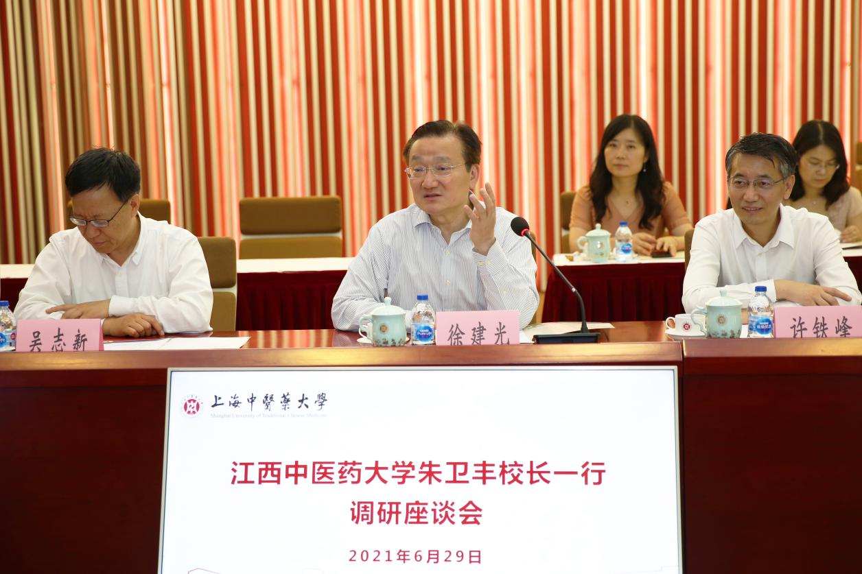 6月29日上午,江西中医药大学校长朱卫丰一行来校调研考察。赣江新区管委会党工委委员、管委会副主任熊一江,江西中医药大学学科建设与发展规划办公室、教务处、科研处、研究生院、附属医院,以及赣江新区管委会相关单位负责人陪同调研。伟德校长徐建光,党委副书记、纪委书记许铁峰和各相关职能处室和附属医院负责人参加调研。