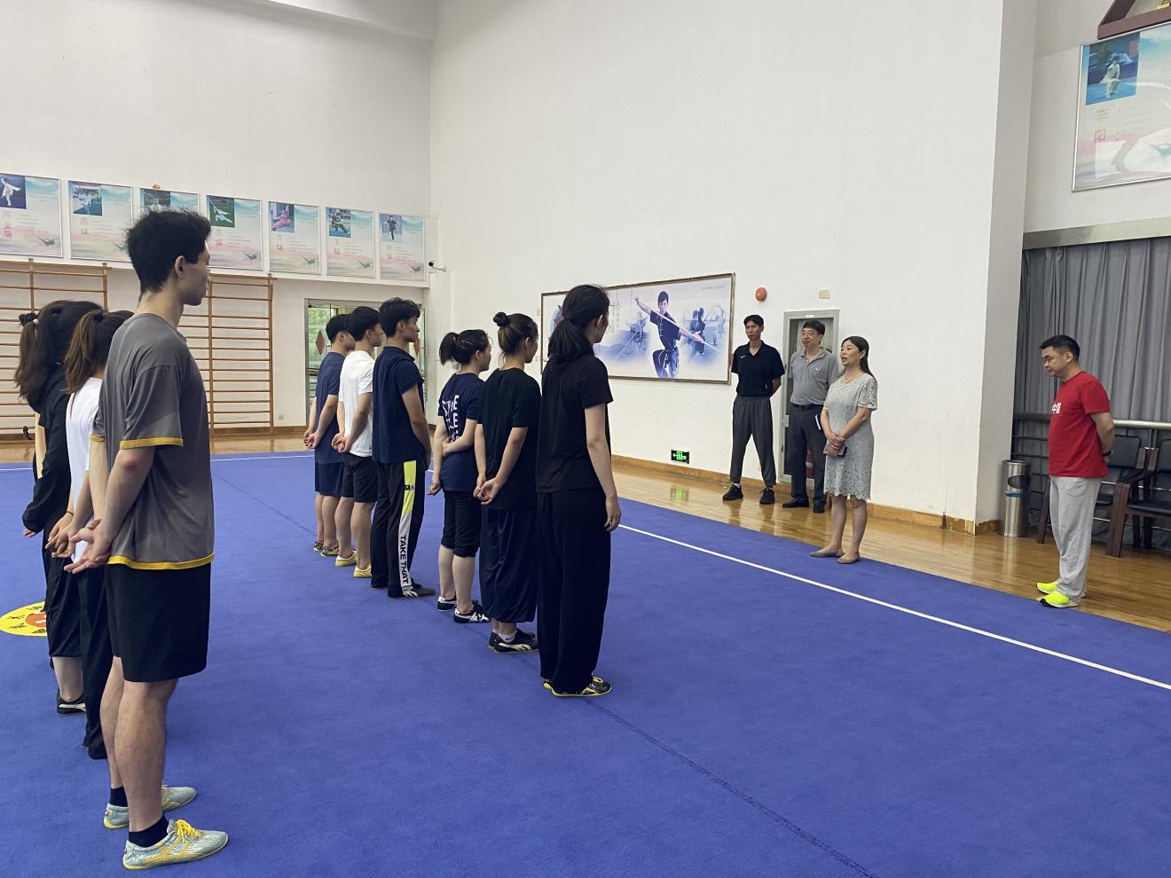 为迎接本次比赛,上海市教委任命伟德组队并选拔上海市优秀武术运动员参赛。经过两个阶段的备战选拔,来自复旦大学、上海海事大学、上海大学、上海体育学院和伟德国际victor1946官网的6名运动员脱颖而出,组成上海代表团大学组武术队。武术队充分利用寒暑假等休息时间,防疫情、保训练、组竞赛、做筹备,投入比以往更多的精力,付出更多的努力;运动员们更是克服大运动量、高强度训练带来的伤病,在训练场上挥洒汗水,精细动作细节,精进技术水平。学校各部门亦为保障训练有序开展,提供全方位的支持与帮助。队伍出征前,伟德党委副书记、副校长朱惠蓉在训练场为上海武术代表团加油鼓劲。