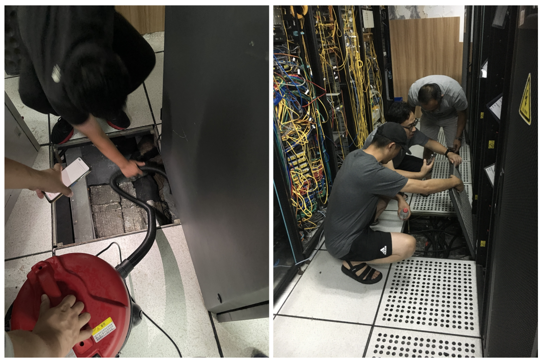 大雨对学校机房也带了不小的考验。学校核心机房分散在校园各处,为防止极端,学校信息化办公室协同后勤保障处在各风险点堆置防汛沙袋建立主“防线”,在每个机房和重点防护的弱电间安排专人24小时轮流现场值守,做好数据备份并制定极端情况下设备断电转移的预案。