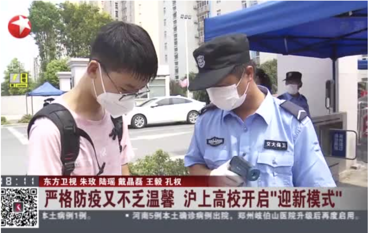 上海电视台:严格防疫又不乏温馨 沪上高校开启“迎新模式”