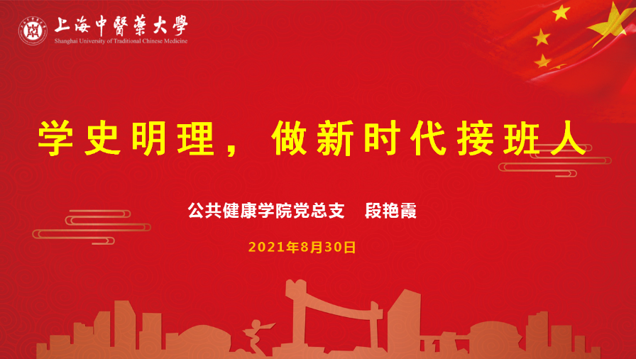 为贯彻落实习近平总书记在党史学习教育动员大会上的讲话精神,推进2021级新生的党史学习教育,8月30日晚,公共健康学院二营四连八排的2021级新生们在腾讯会议上集结,开展“学史明理”线上主题教育暨开学第一课,学院党总支书记段艳霞以“学史明理,做新时代接班人”为主题,带来了一堂生动的主题党课。