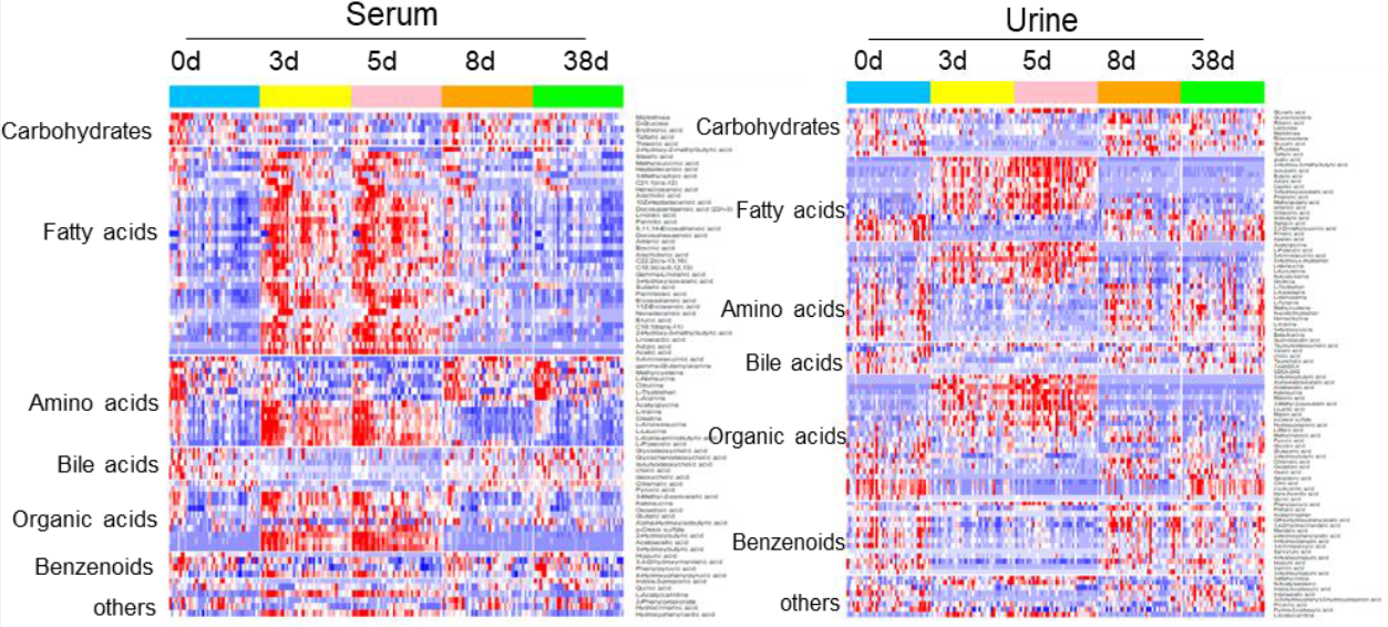 该研究入组了41名具有辟谷经验的健康志愿者,在专业医护人员的陪护及指导下完成。辟谷方案采用持续5天仅饮水的方式进行。完成辟谷后,研究人员根据每位志愿者每日正常热量需求的30%、60%、100%分3天逐渐完成饮食恢复。并于复食后第一个月和第三个月进行跟踪随访。临床试验期间,医护人员按时严格对受试者的生命体征和心理状况进行评估,同时采集其血液、尿液等标本进行常规检测和代谢组学分析。