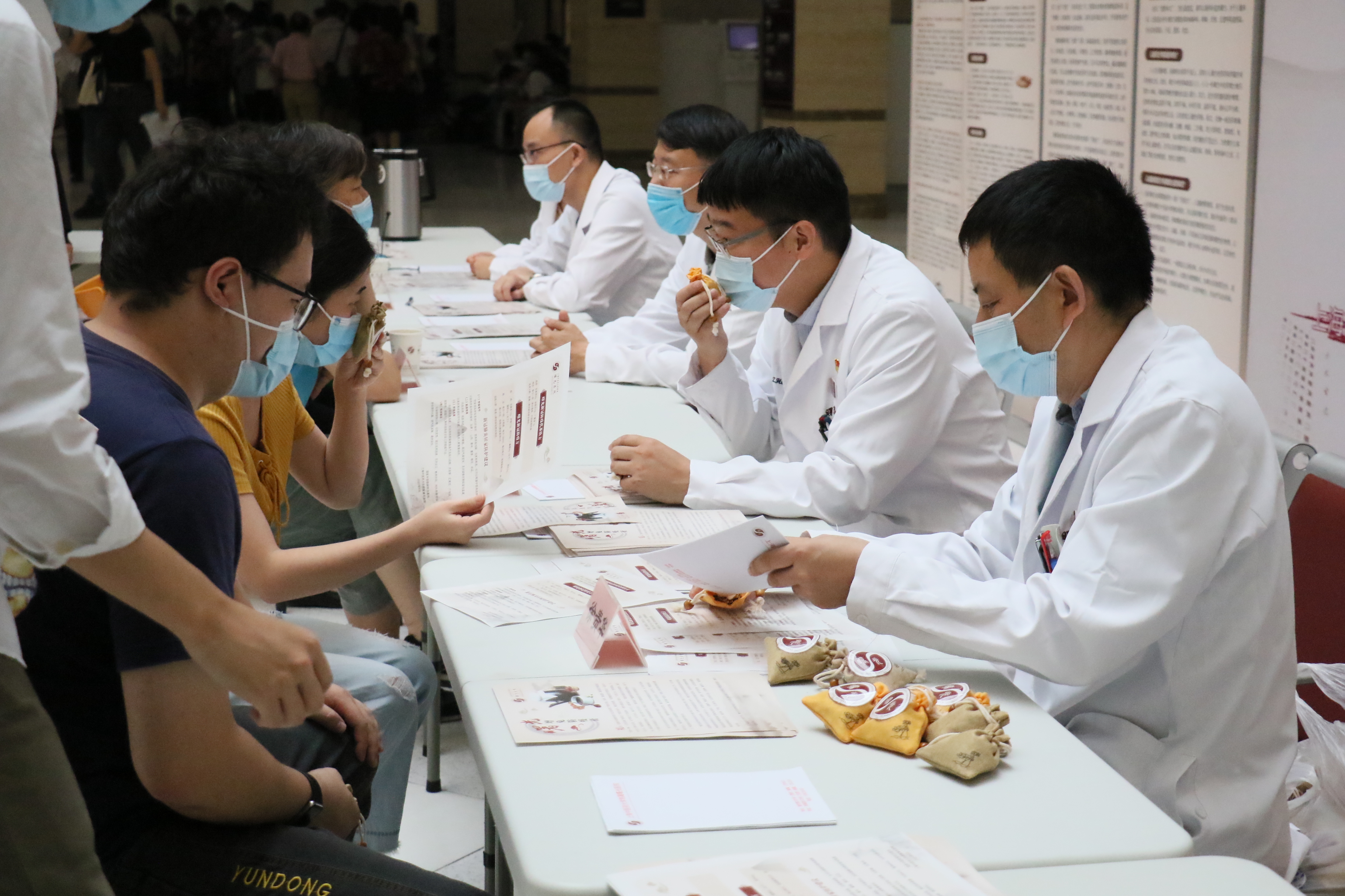 9月28日上午,附属曙光医院东院门诊大厅人声鼎沸,一场“外感疫病,中医可行”公益咨询活动在此举办。活动现场,曙光医院呼吸科团队积极宣介中医药防治外感疫病知识,为不同人群的中药内服方答疑解难,更有曙光防疫代茶饮赠送、曙光防疫香囊制作体验、曙光防疫健身导引操示范等精彩环节,吸引了不少患者和居民参与。