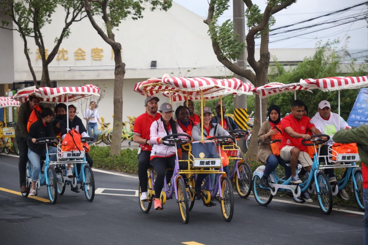 随后,师生们转场到户外,体验了一场别致的“乡间骑行打卡活动”。海沈村是两届场地自行车冠军钟天使的家乡,因此,在此处举办骑行活动具有特殊的意义。活动中,主办方带领沪上国际学生,以骑行打卡的方式领略乡村美景,感受上海浦东的新农村发展,体验改革开放的日新月异。