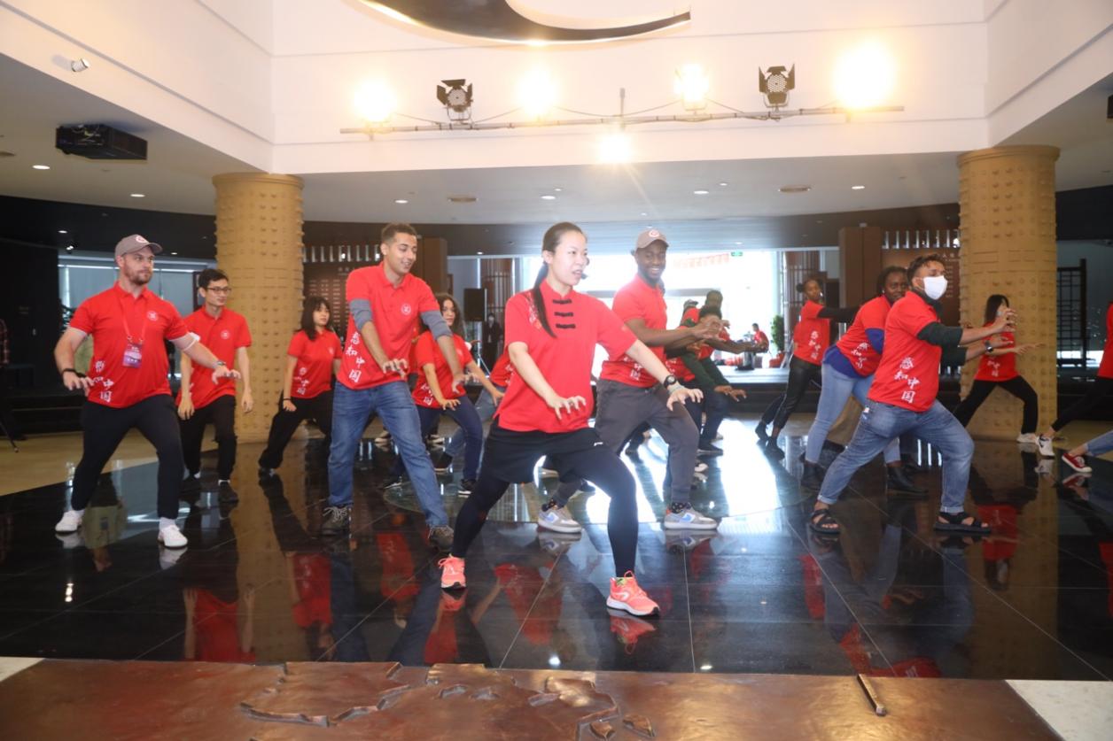 学校体育部张梦珊老师带领国际学生体验五禽戏