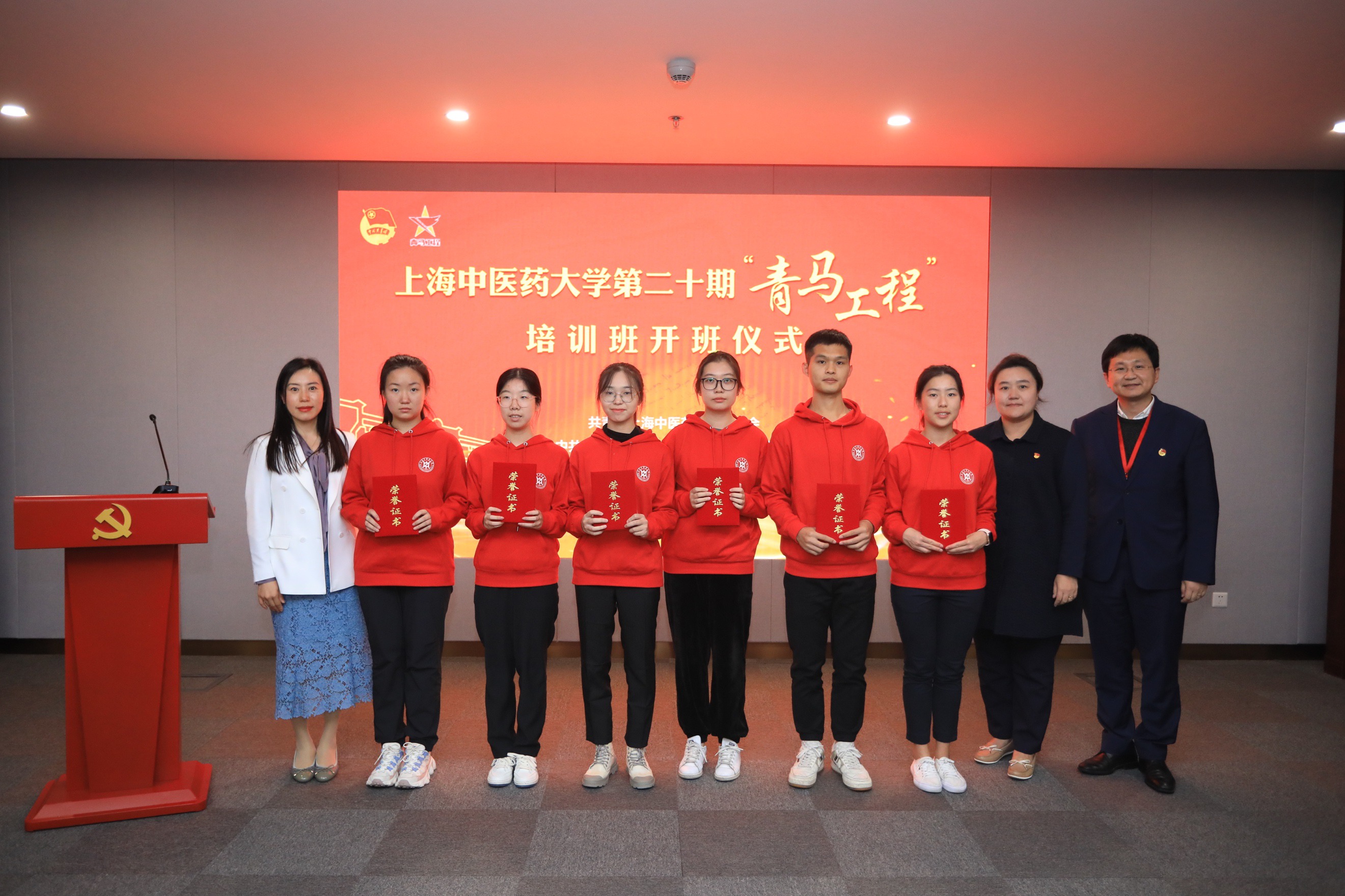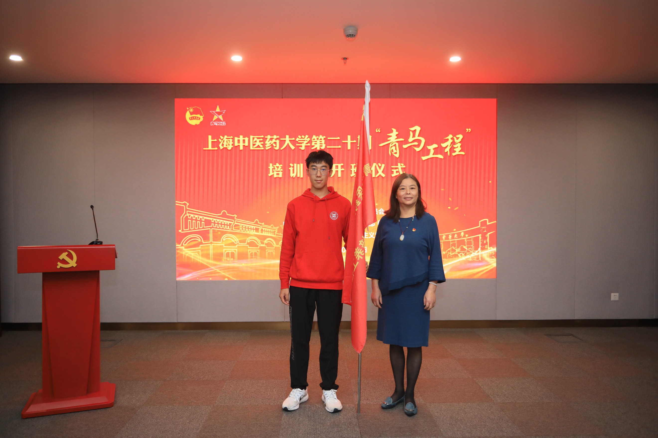 朱惠蓉为第二十期青马班学员代表授旗并讲话,她介绍,伟德“青马工程”培训班已开展12年,目标就是为党培育具有忠诚的政治品格、浓厚的家国情怀、扎实的理论功底和突出的能力素质的青年政治人才。她希望学员们作为新时代的大学生,通过未来一年的培训,以史为鉴,筑牢信仰之基,争做信念坚定、堪当大任的“杏马青年”;求真务实,勇担时代责任,争做传承精华、守正创新的“中医青年”;心有所信,牢记强国有我,争做不负青春、不负韶华的“中国青年”。