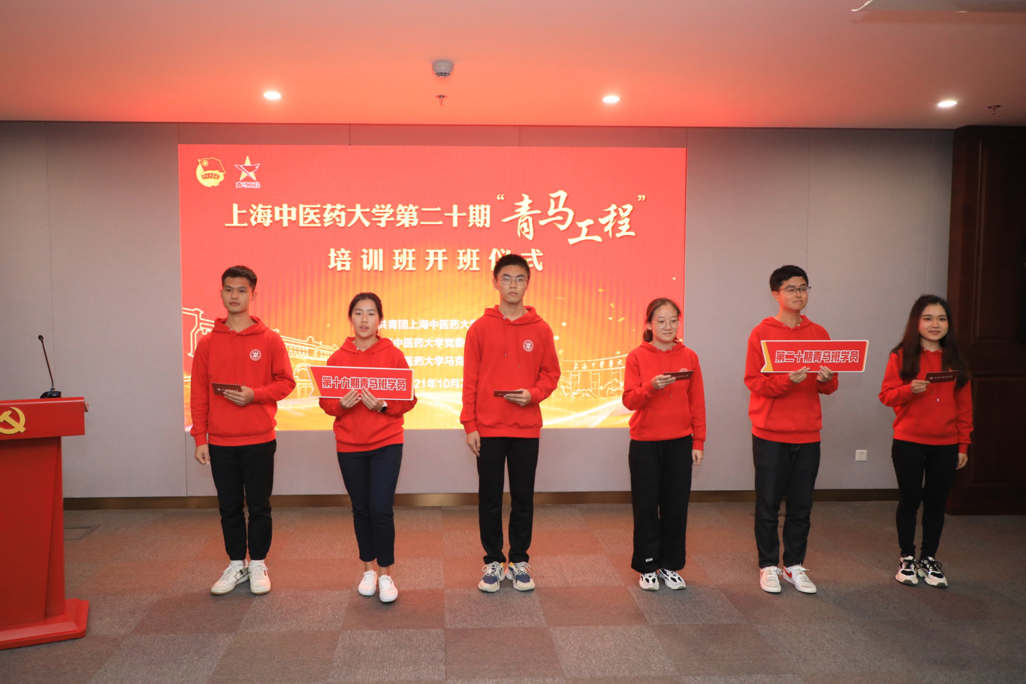 在“杏马青年说”主题演讲中,第十九期青马工程培训班学员代表讲述了自己在一年学习中的身体力行和所感所悟。学员们加入“党的诞生地”志愿服务队,在中共一大纪念馆践行杏林学子的爱国心;成为上海中医药博物馆讲解员,用声音的力量传播中医药文化;参与医院疫情防控、社区医疗服务工作,在临床科研的第一线坚守初心。第二十期青马工程学员代表分享了自己对如何传承红色基因、做合格的中医药事业接班人的理解,承诺在培训班一年的学习中努力加强理论素养,以行动践行当代青年学子的爱国心、报国志。