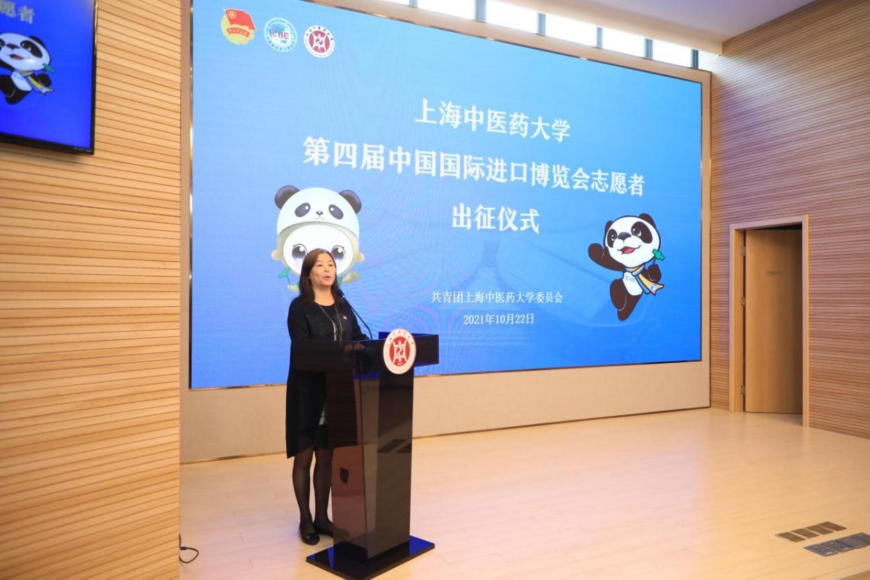 朱惠蓉在致辞中结合自身经历,寄语中医“小叶子”,要牢记志愿初心、实现服务零距离,在志愿服务的过程中,做好自我保护、增强学习意识,遵守场馆规则和工作纪律,要承担起新时代青年的责任,在进博会中提高创新能力和团队合作能力,坚持文化自信、努力弘扬中医药文化,用自身的真情和热情向全世界彰显中国青年的志愿精神。