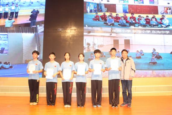 浦东新区学生活动中心体育活动部部长严军平、上海市大学生及中学生体育协会竞赛部部长赵文潇为优秀教练员颁奖,上海市武术协会常务副会长严辉、上海武术院院长陈皓为优秀组织奖颁奖,上海体育学院武术学院院长郭玉成、上海市大学生及中学生体育协会副秘书长顾承锷为学员颁发结业证书。