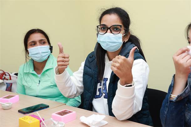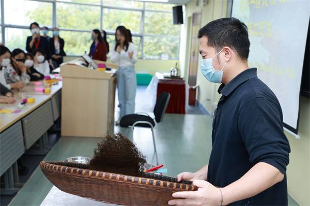 此外,国际学生体验了中医功法,还动手体验了我国传统工艺品——线雕团扇的制作过程。一把团扇、一支画笔,在指导教师的引导下,一幅幅奇思妙想跃然扇上,栩栩如生,创意十足。