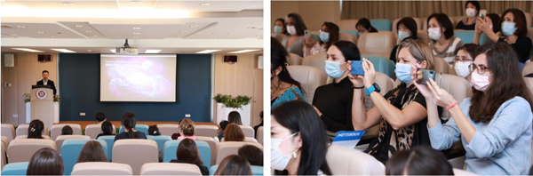 中药和针灸是外国友人眼里较为熟悉的中医药治疗方式。两场讲座从饮食调理与作息起居入手,带领外国友人发现日常生活中所蕴含的中医之道。来自伟德国际victor1946官网附属龙华医院的副主任医师王骁在“药食同源”科普讲座中,从食物的五味四气介绍了黄芪、大枣、枸杞等二十余种药食同源食物的搭配方法,向在场外籍人士介绍了以食物自我疗愈的方法。
