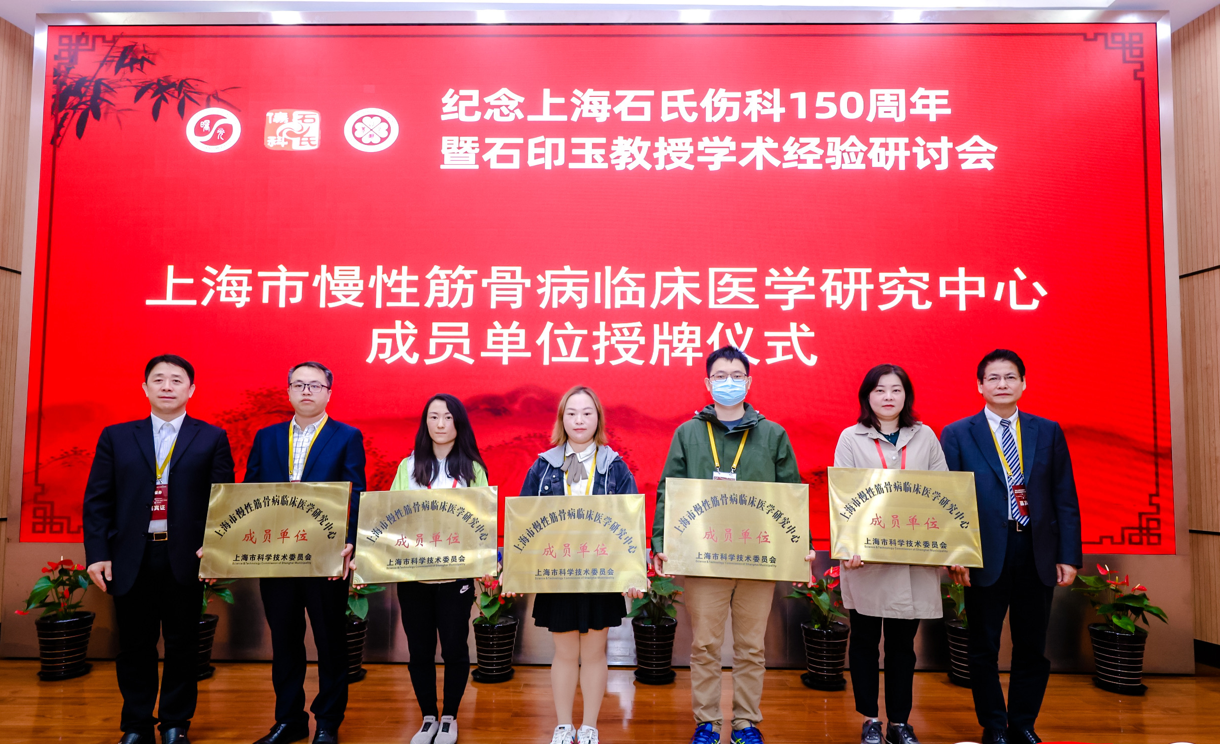 会上,胡鸿毅为石印玉颁发“上海市慢性筋骨病临床研究中心”专家咨询委员会主任委员聘书。徐建光为石氏伤科第五代传承人、曙光医院骨伤科主任詹红生颁发“上海市慢性筋骨病临床研究中心”主任聘书。王庆华、周华为上海市慢性筋骨临床医学研究中心成员单位授牌。(曙光医院)