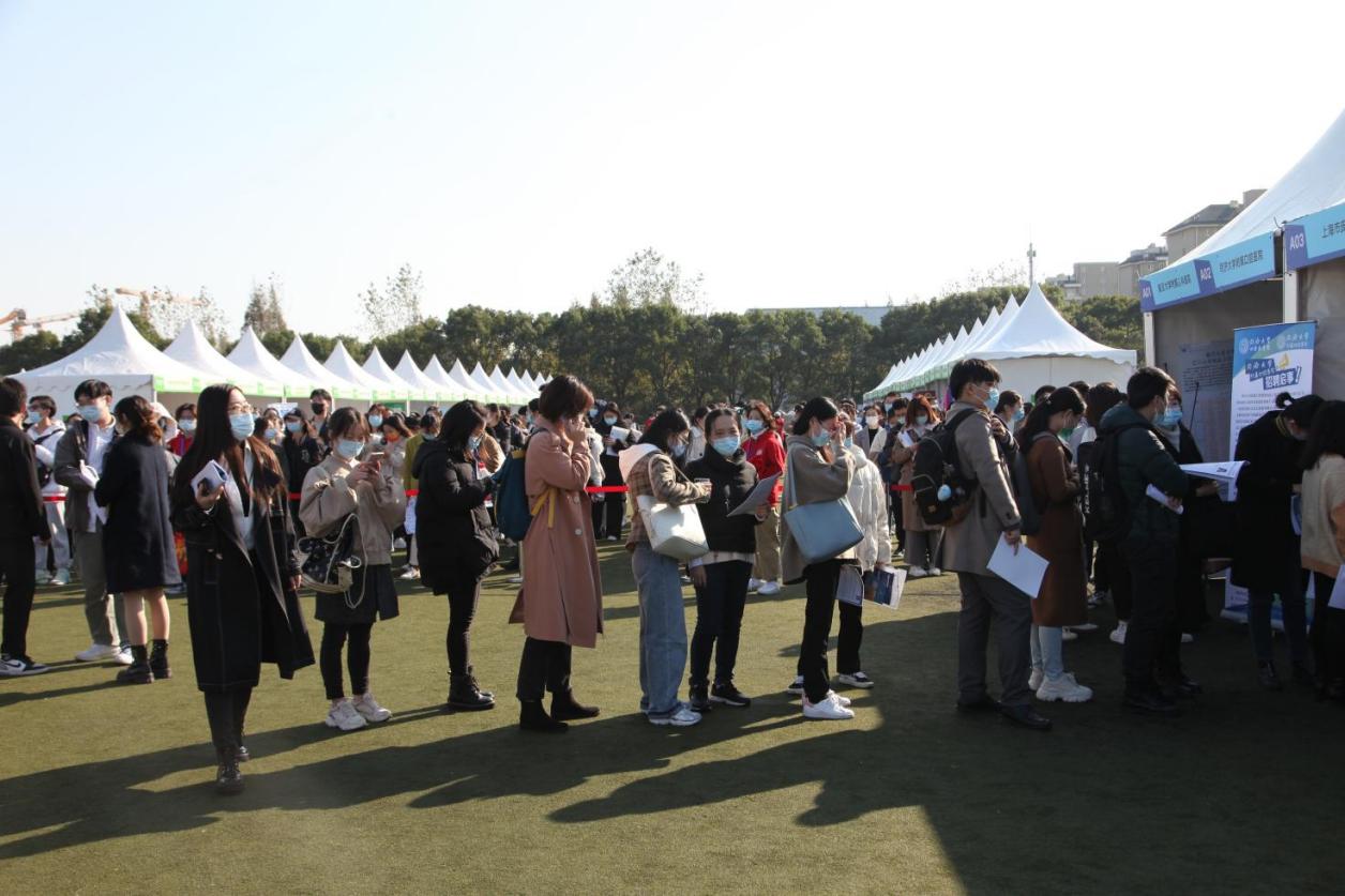 招聘会严格落实疫情防控,参会招聘人员均无14天内离沪记录,且现场分为四个独立区域,各区域限制人流,全员佩戴口罩。同时,外省市用人单位采用线上渠道陆续开展“空中招聘会”,为毕业生提供高效便捷的就业服务。