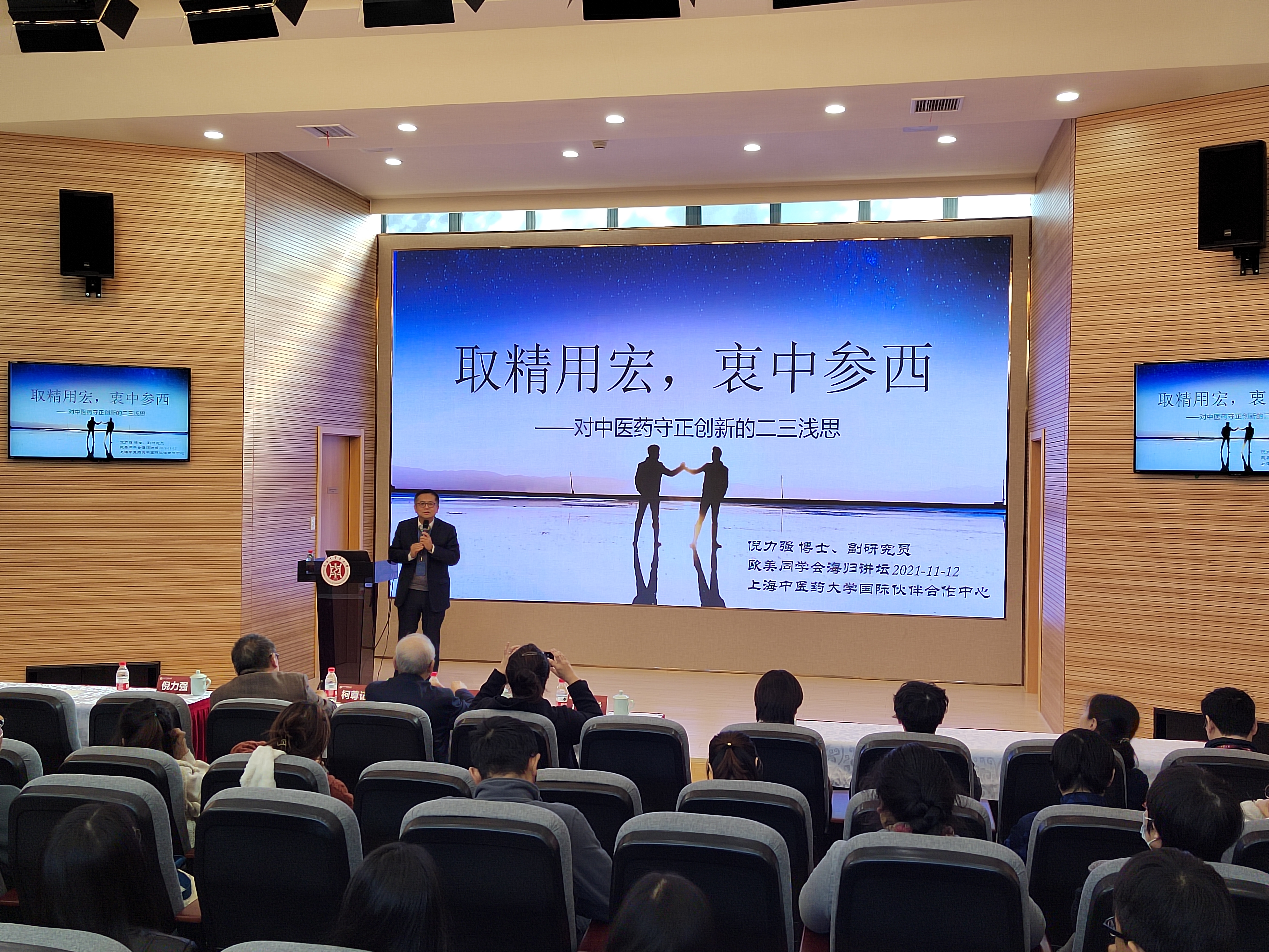 11月12日下午,由伟德统战部、欧美同学会、科技处、基础医学院联合主办的“海归讲堂”在全球合作伙伴中心一楼报告厅举办。校欧美同学会会长刘平、统战部副部长严月华出席。校欧美同学会副会长、基础医学院院长吕嵘主持讲堂。校图书馆常务副馆长、上海中医药杂志社社长倪力强,伟德国际victor1946官网中西医结合研究院研究员柯尊记作讲座。