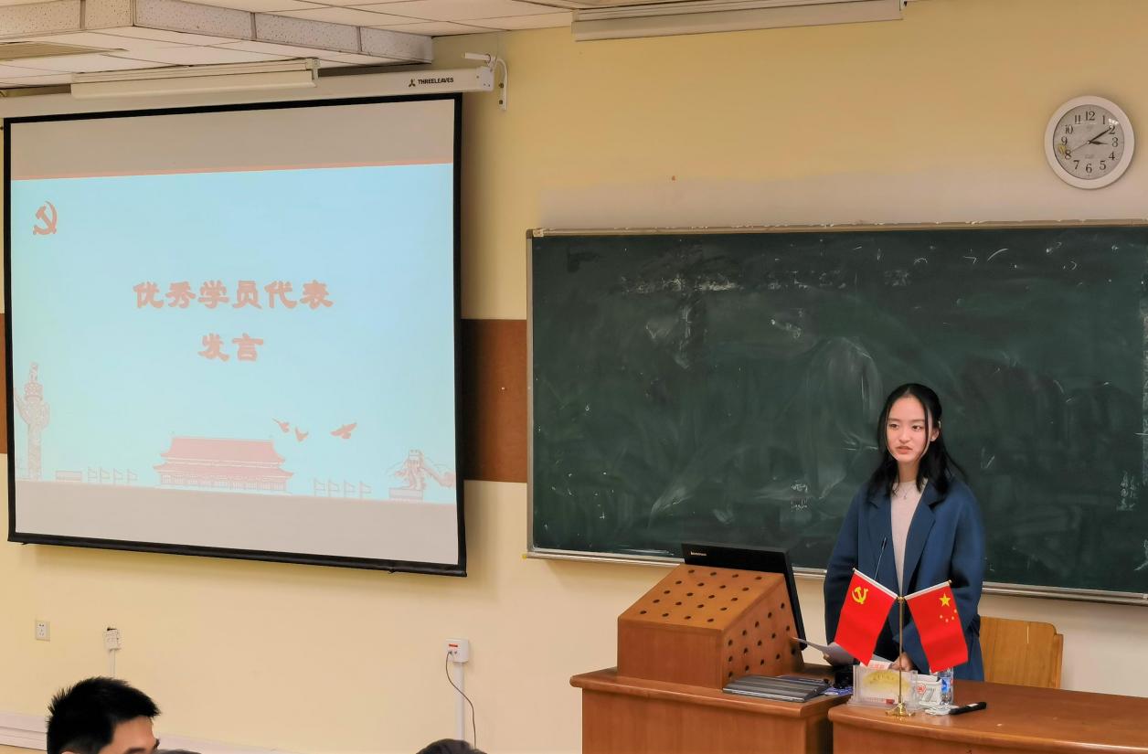 2019级中医学(5+3一体化针灸推拿英语方向)专业学生周叙作为优秀学员代表发言。她表示,当代大学生是国家的希望,是党的后继力量,应当以党员标准严格要求自己,学好理论,锻炼党性,学好专业,练好本领,守正创新,继承发展好中医药事业。