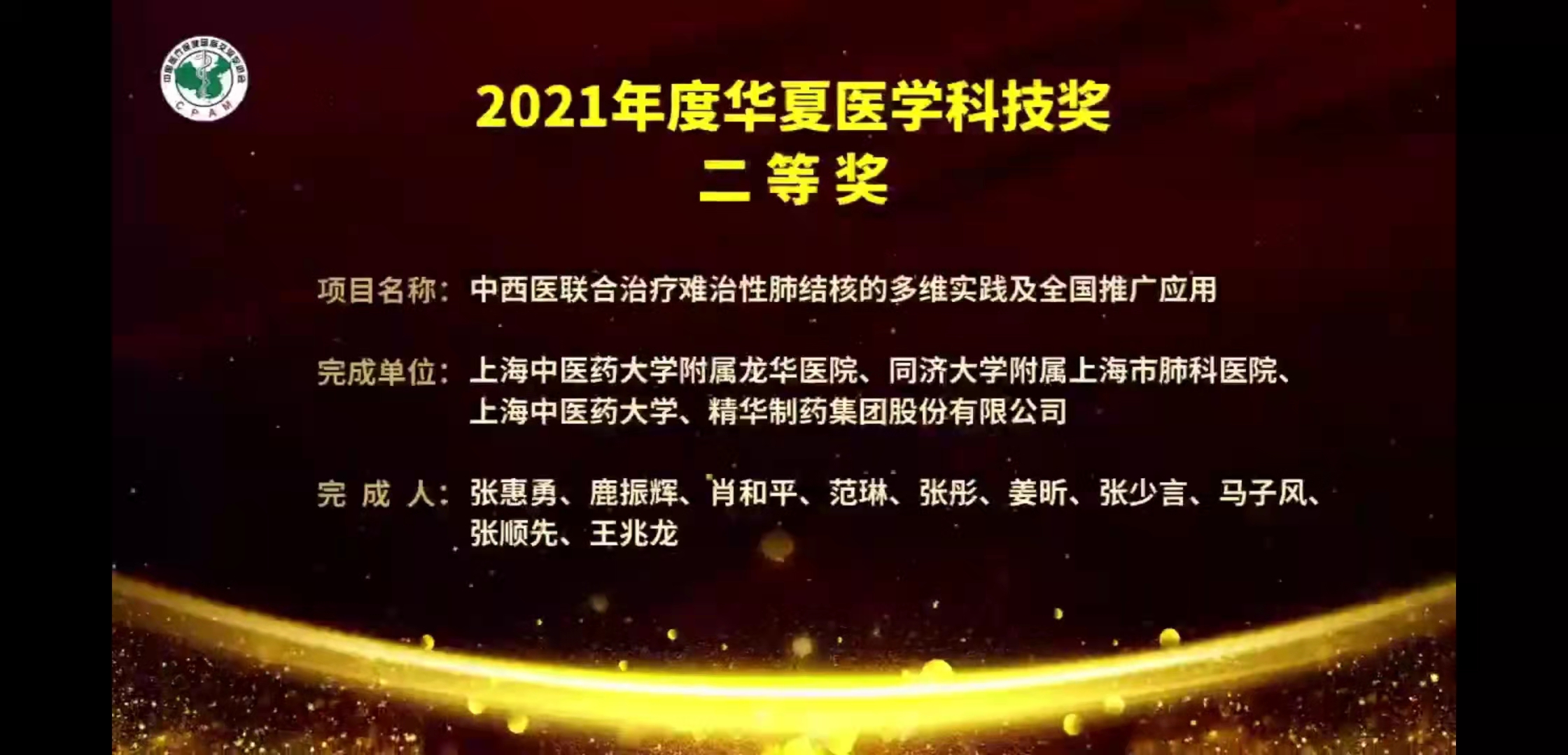 伟德附属龙华医院张惠勇领衔的成果《中西医联合治疗难治性肺结核的多维实践及全国推广应用》荣获华夏医学科技奖二等奖;附属第七人民医院路建饶领衔的成果《慢性肾脏病进展关键致病机理及系列方药的创立和应用》荣获三等奖。