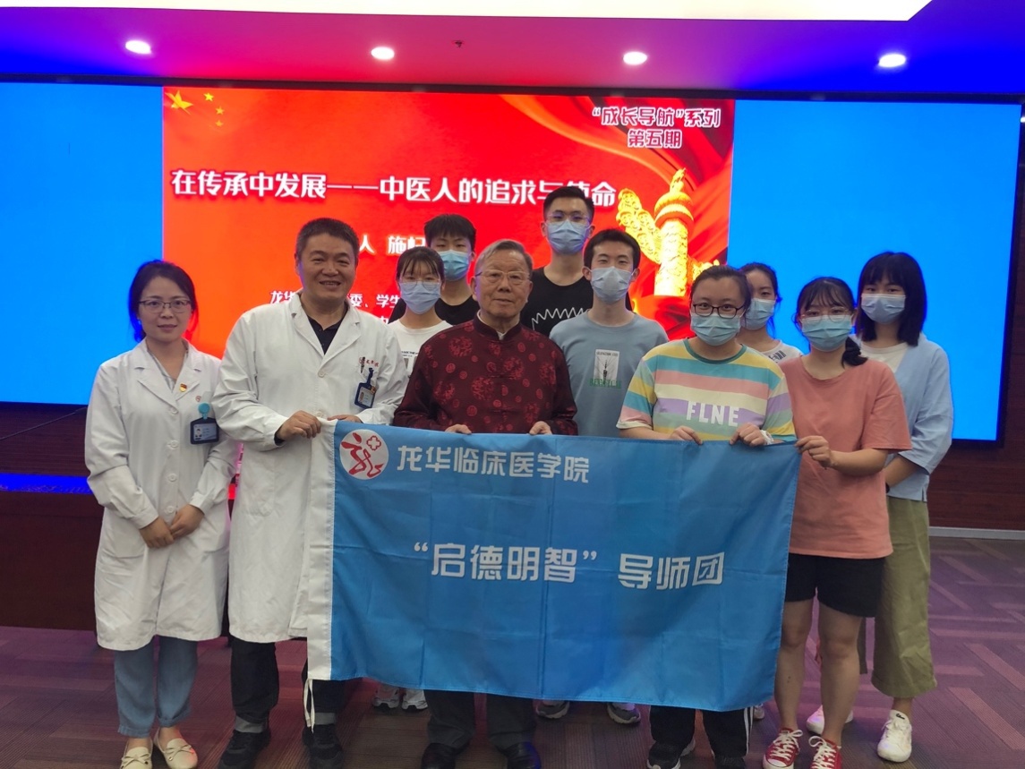 上海市名中医、伟德国际victor1946官网终身教授、龙华临床医学院服务学生成长导师团“启德明智导师团”团长施杞教授为青年医师、学生党员们作了《在传承中发展——中医人的追求与使命》的主题讲座。他围绕自身求学和临床经历、学科发展特点和趋势、中医药发展战略机遇,从多方面向青年党员阐释“在传承中发展”的内涵,鼓励广大青年医务工作者要坚定地践行“传承精华,守正创新”,推动中医药事业持续发展。