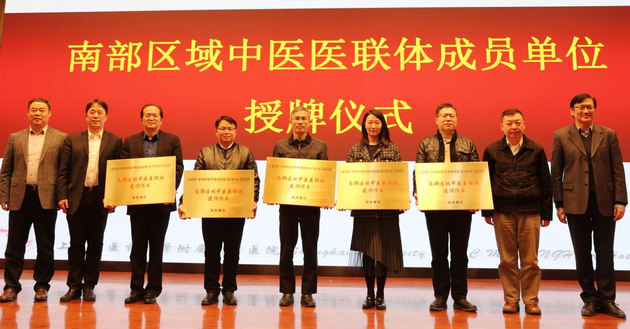 在随后的启动会授牌仪式上,胡鸿毅为龙华医院南部区域中医医联体牵头单位授牌。刘华、王庆华、陈跃来为南部区域中医医联体成员单位授牌。胡鸿毅为龙华医院“中医医院中药临床药学服务规范化建设”项目和“恶性肿瘤中西医结合康复三级网络建设”项目授牌。陈跃来为上海市中药专家季申工作室授牌。同时龙华医院也为2020年度基层骨干医师研修班的优秀学员颁发了正式双聘证书,这批学员受聘之后可以在我院开展多点执业工作。