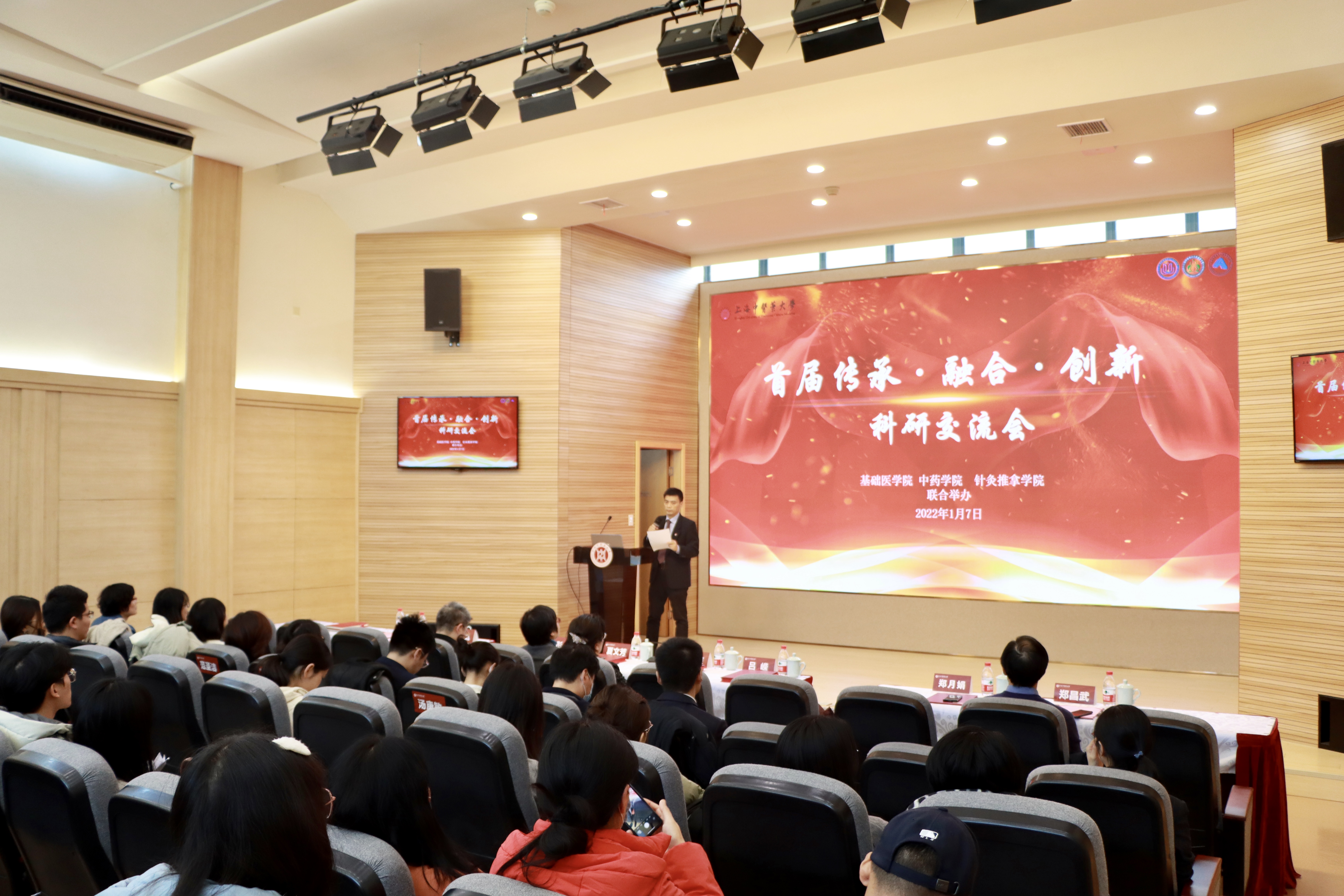 为更好促进学科交融和合作,传承发展中医药事业,由基础医学院、中药学院和针灸推拿学院联合策划,首届“传承·融合·创新”科研交流会于1月7日下午在伟德全球合作伙伴中心报告厅举办。基础医学院党委书记夏文芳、院长吕嵘、副院长郑月娟,中药学院党委书记沈岚、院长张彤、副院长郑昌武,针灸推拿学院党总支书记陈秋生、院长赵琛和多个学院的师生共同出席会议。会议由郑月娟主持。