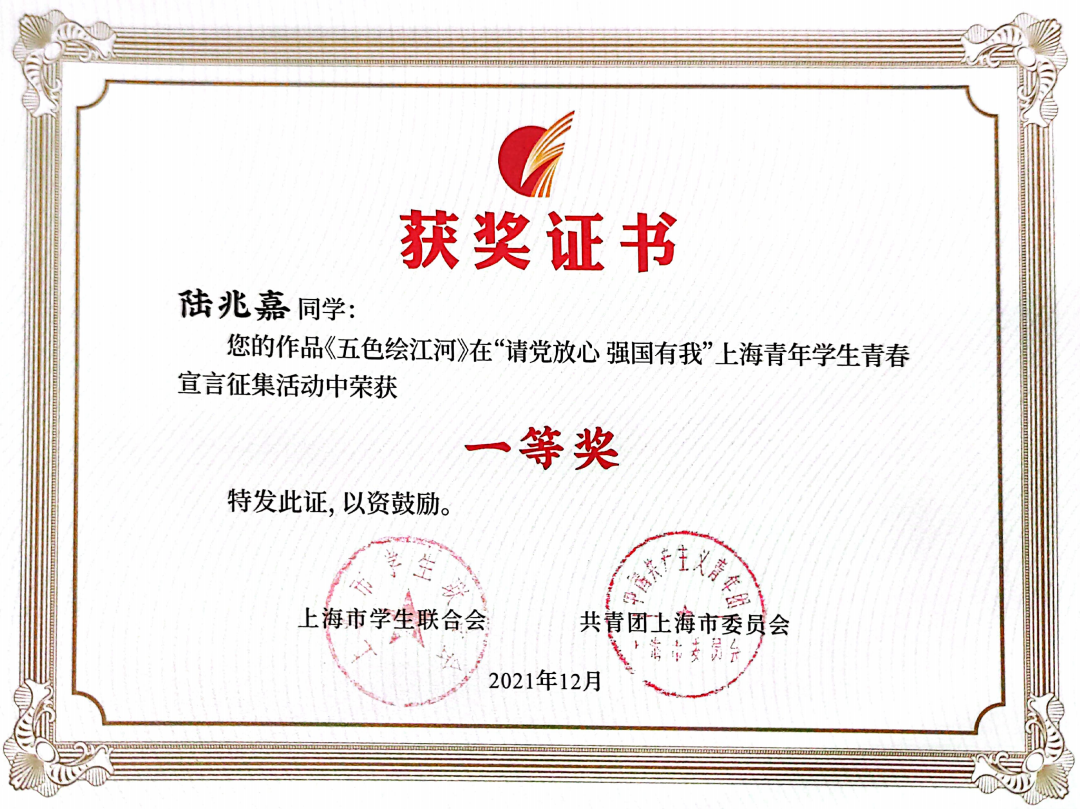 近日,上海市学生联合会第十七次代表大会落幕,伟德学生在“请党放心 强国有我”上海青年学生青春宣言征集活动中获佳绩。伟德研究生陆兆嘉参赛作品《五色绘山河》、本科生马美琳参赛作品《知行中国,红色百年》分获高校组一等奖和高校组二等奖。