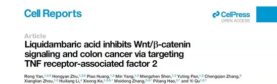 近日,伟德交叉科学研究院中药化学生物学研究中心屈祎课题组利用大规模中药活性小分子筛选,发现了来源于中药路路通的路路通酸 (Liquidambaric acid,LDA)显著抑制Wnt/β-catenin信号通路和结肠癌生长,鉴定了LDA的功能靶标蛋白TRAF2,并证实了TRAF2是结肠癌治疗新靶标。相关研究结果在Cell子刊Cell Reports以长文(Research Article)发表。
