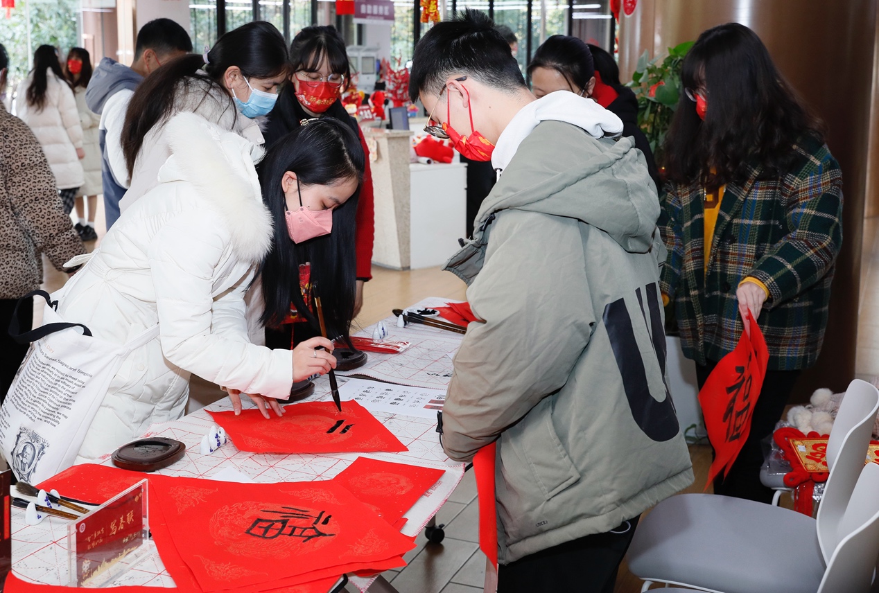 除夕一早,热热闹闹的“五福游园会”拉开了迎新春系列活动的序幕。迎祥纳福是过年特有的习俗,为弘扬中华优秀传统文化,学校把中医药文化体验融入春节民俗活动。写福字、制香囊、五禽戏、诗词接龙、新春插画、DIY灯笼等活动,动手动脑还舒展筋骨,活动受到学生们的欢迎。同时,为做好疫情防控工作,活动采用了分时段预约的方式进行,让师生们分批分散参与。