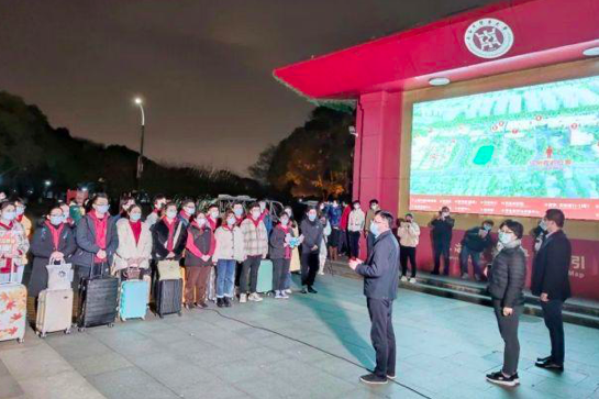 今晚7点,学校在蔡伦路1200号正门前为PCR检测志愿者服务队举行简单的出征仪式,伟德国际victor1946官网党委书记曹锡康代表学校对学生们的志愿服务热情表示肯定,对大家运用所学医学知识和实际行动服务社会和人民的义举致以崇高敬意,同时叮嘱志愿者们做好自我防护,凯旋而归。