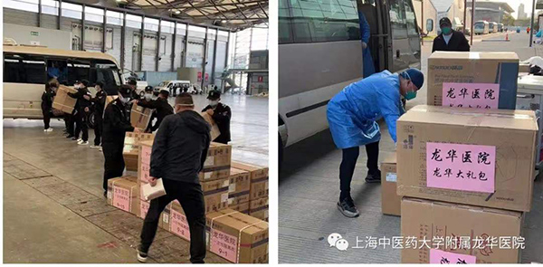龙华医院搬运物资。龙华医院供图