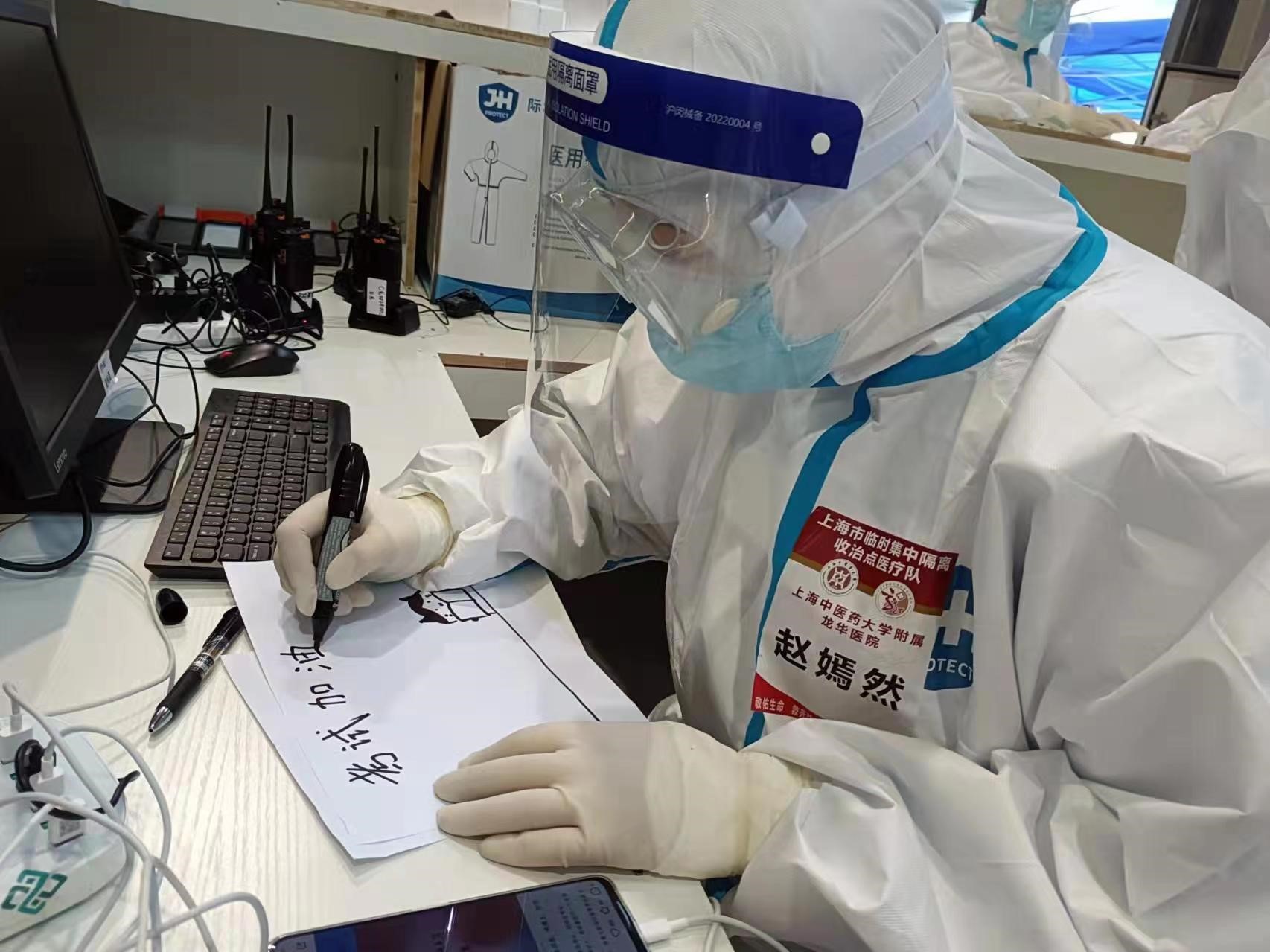 医护人员写上“考试加油”。