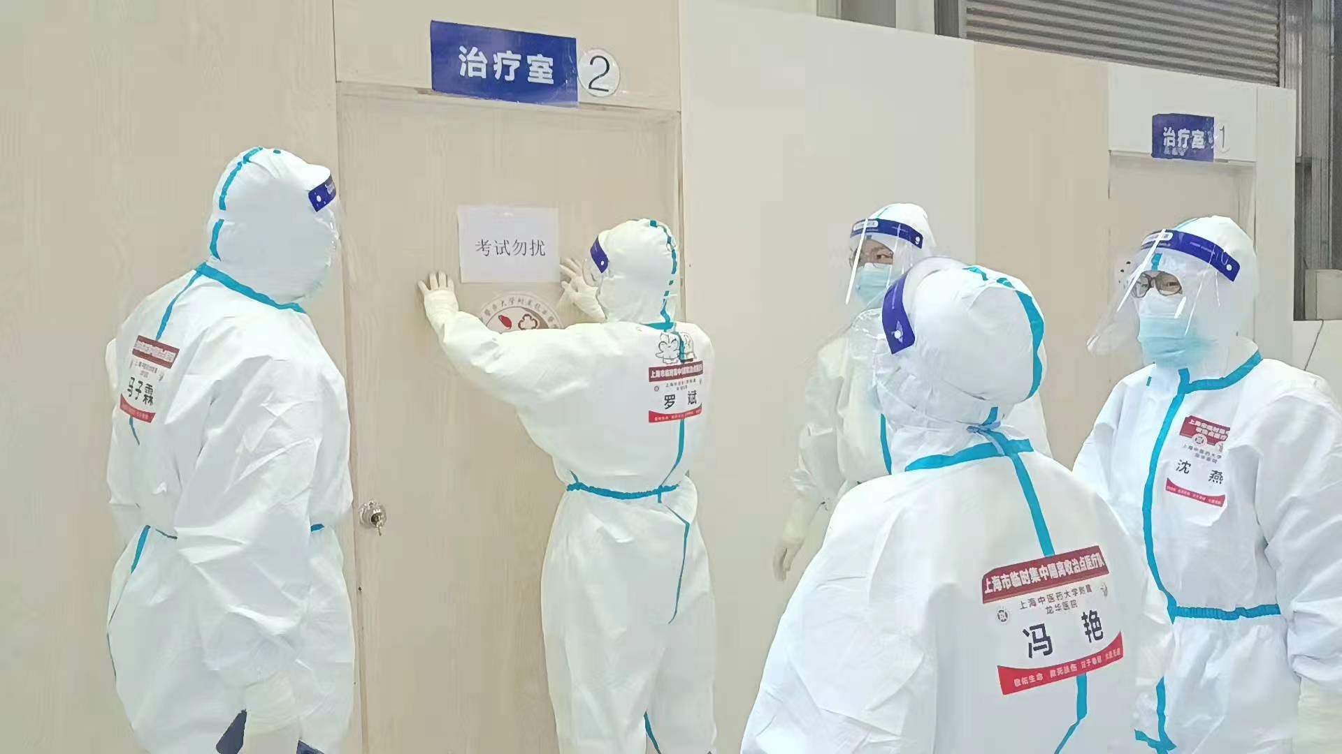 专属方舱门上贴着“考试勿扰”。