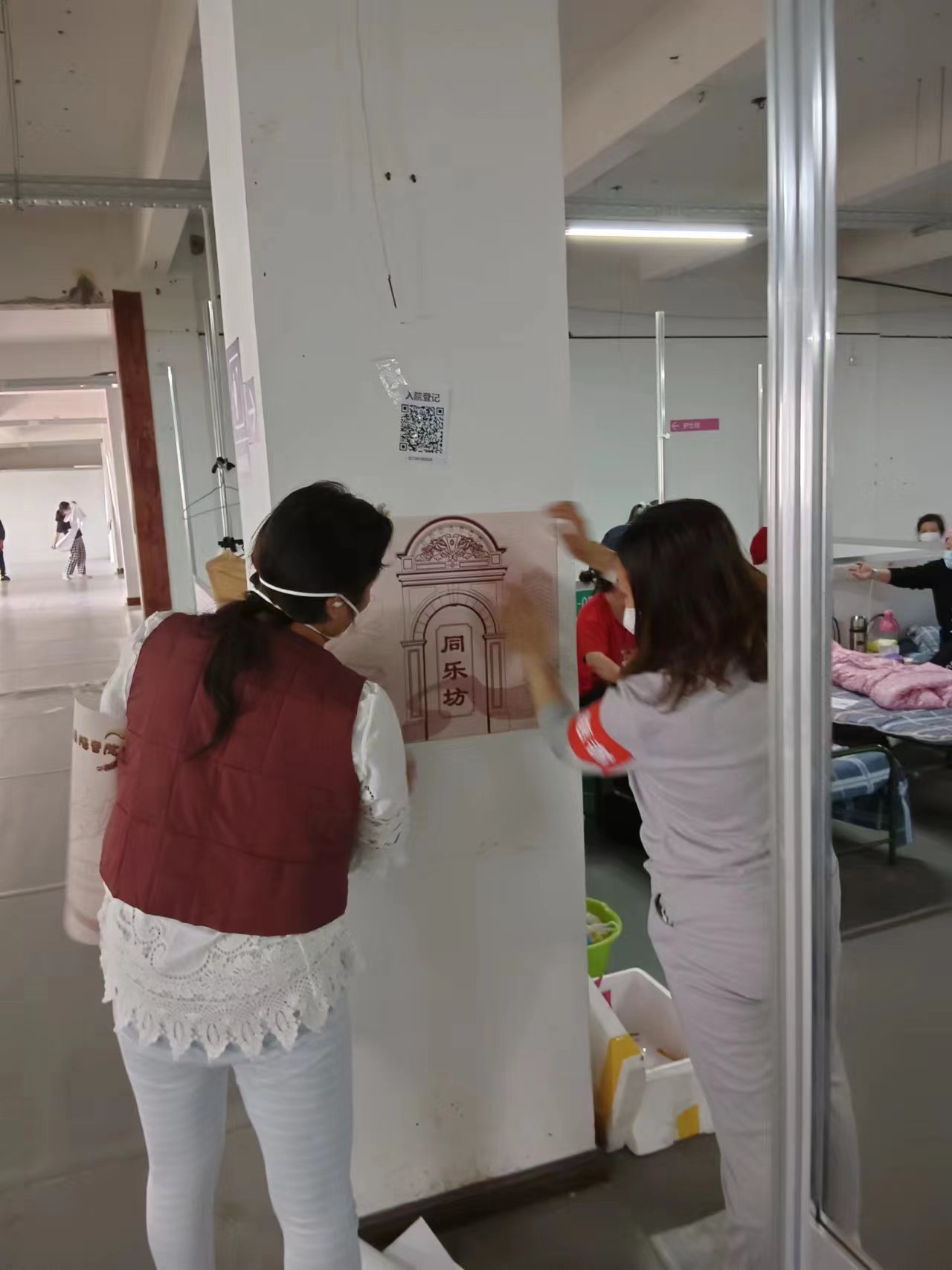 大白们为病区贴上里弄标识。